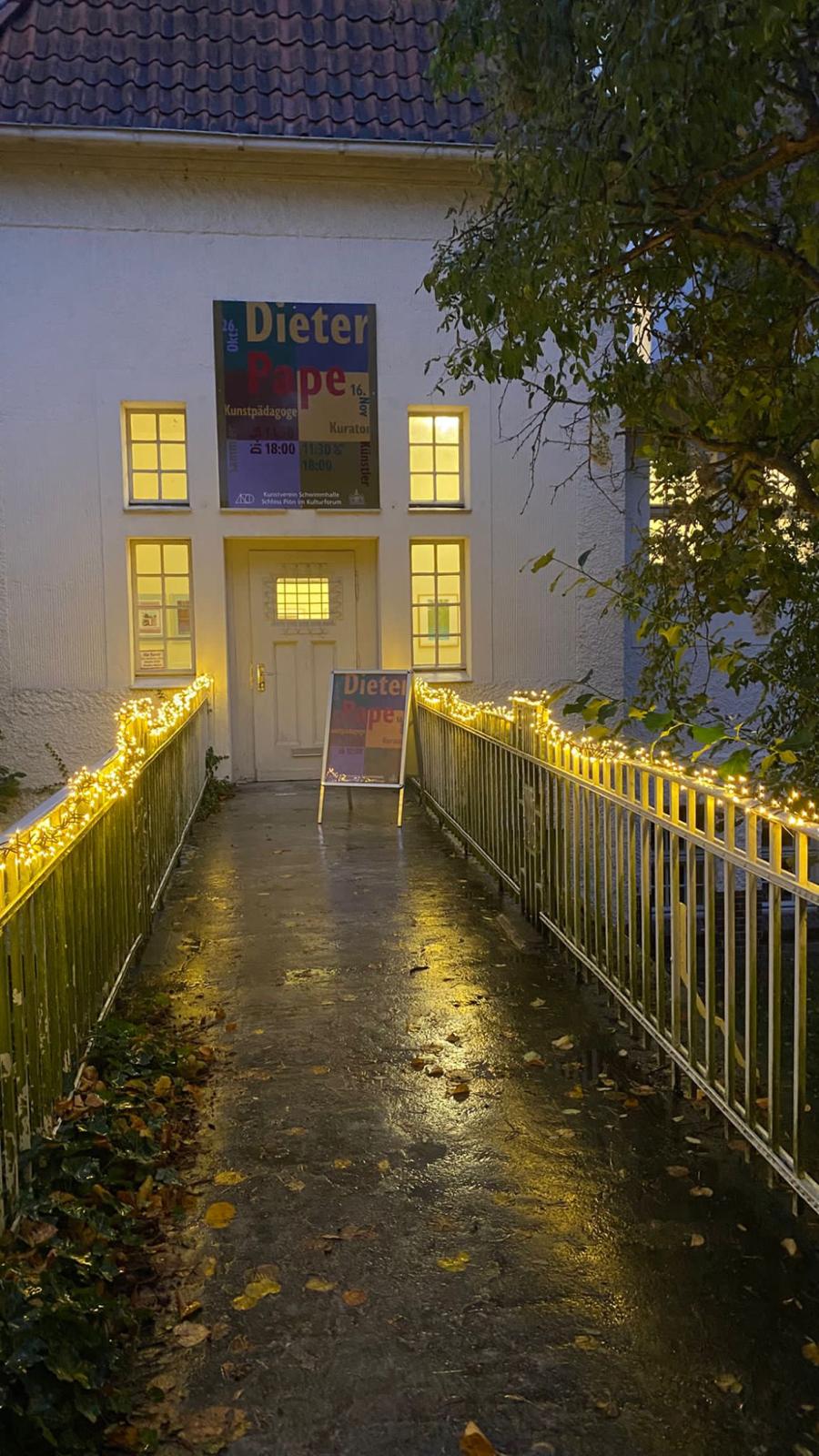 Zusammen mit seiner Frau Barbara, mit Prof. Valentin Rothmaler und anderen hat er für die hohe künstlerische Qualität der vielen Ausstellungen in 35 Jahren Vereinsgeschichte Sorge getragen. In der Ehrenausstellung wurde das sichtbar in der Mischung von frühen Werken Dieter Papes selbst mit Bildern aus der umfangreichen Sammlung der Eheleute Pape und nicht zuletzt den ebenfalls ausgestellten Arbeiten von Schülerinnen und Schülern von Dieter Pape. Die waren von denen der professionellen Künstler*innen manchmal kaum zu unterscheiden.